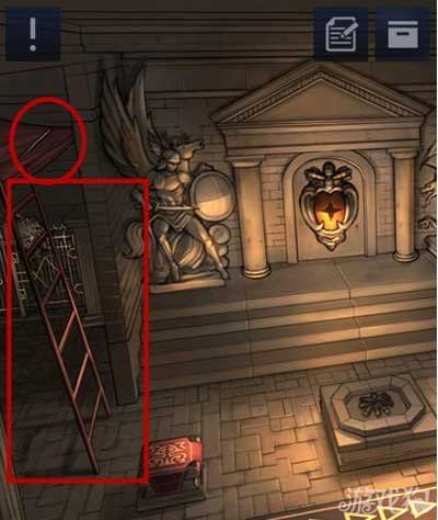 使用梯子从如图位置爬上去,在上面拿到一个铁橇。