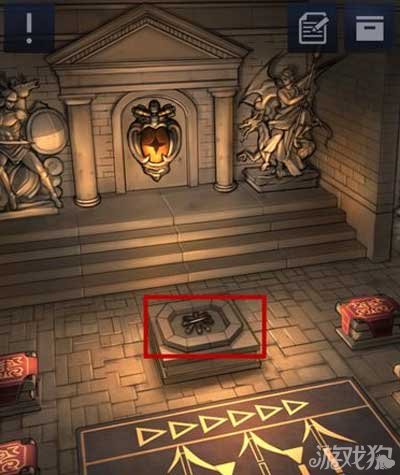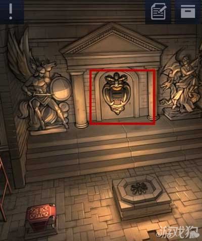 这时先来到左边的铁门位置,点击下面的开关将铁门打开。