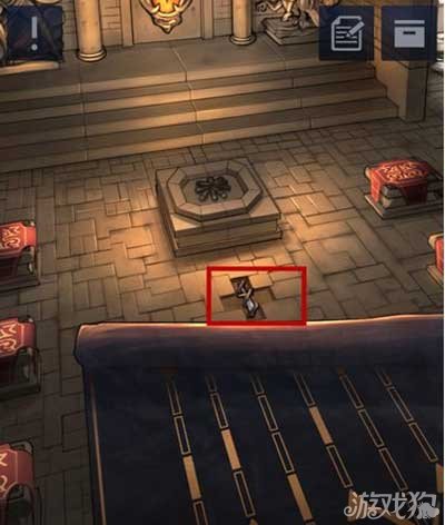 将中间的地毯掀起,用铁橇撬开十字位置,能得到一个被写满字母的带子包裹的匕首。在工具栏将其分解,得到带子和匕首。