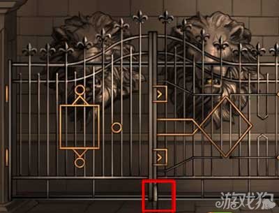 铁门上有三个圆形,圆形柱子的第三位即是字母E。以此类推能得到正方形为M,六边形为A,三角形为N,圆形为E。按照对应的输入到密码盘中即可打开大门。