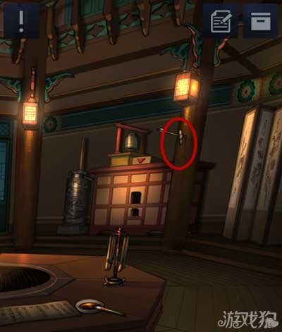 如图屏风上能找到一张白纸,然后点击大门的龙形图案。