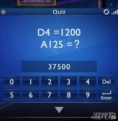而Quiz则是一个数据的演算。给出了D4=1200,要玩家演算A125=多少?