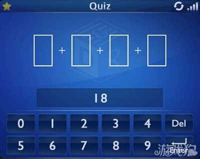 大门上的密码除了作为开启密码箱的密码之外,在这个版本的游戏中,每一关还有一个Quiz,这四个数字还要对应Quiz 的提示来得到Quiz的答案。回答出来之后就能得到一颗星星。这里的提示意思是让玩家将牌匾上的四个数字加起来。最后的答案就是密码。