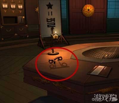 就像这样放在桌子上,然后观察道具的影子。经常看韩剧之类的应该知道这个影子是一个韩国字。只能说像小编这种不看韩剧,不懂韩文的人真是给跪了,完全不知道这是个什么玩意。只能说,就算出谜题也要考虑一下各个国家人民的感受啊。