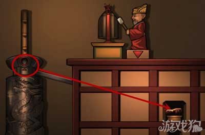 龙珠的用法是在右边的柜子位置。柜子的旁边有一个奇怪的装置,上面有龙形浮雕的那个。玩家如图所示将龙珠从左边的那个空的位置放进去。右边出口就会调出来一个奇奇怪怪的道具。这个道具是用来放在桌子上看他的影子的。