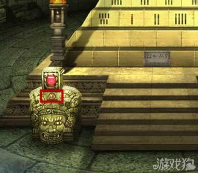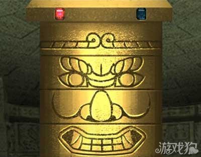 金字塔两边的头像上的宝石颜色,就分别对应塔尖上的两个宝石,对应的完成改变之后,塔尖的宝石亮起。两个宝石都亮起之后,下面的两个人头石像的机关就会打开。打开后玩家能得到道具碎片。将其组合在一起之后是一个小型的佛像。