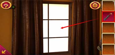 左边的窗户位置,将窗帘拉开后,用蜡烛靠近玻璃。