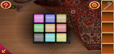 根据提示从红色的方块开始按起,每按一个方块,下一个应该按的按钮就会自动亮起。所有的按钮都点亮后即可打开密码箱得到另外半把钥匙。将两个钥匙碎片合成完整的钥匙后打开大门出去即可过关。