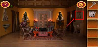 如图位置靠近门的椅子上能看到一个保证,移开后得到半张画。