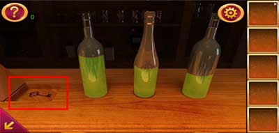 改变酒瓶里的液体使他们同时到达刻度线的位置。完成后旁边盖子打开拿到钥匙,开门之后走出即可过关。