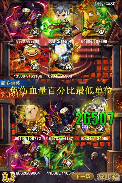 1)免伤场上血量百分比最低的单位,而非血量绝对值最低的单位