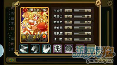 还有紫色状态速度初始属性比较高,而且魔攻和物理都是71所以适合魔攻陪一股大胃全速加点。