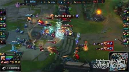 14分钟,RNG这波有点炸了。千珏和布隆在河道想要阴一波蜘蛛,没想到蜘蛛居然是在勾引自己,被SKT直接支援过来之后,RNG阵型完全是混乱的,虽然杀掉了蜘蛛,但却被SKT反打了一波1换4,血亏啊。