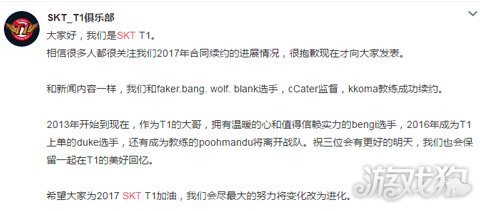 希望大家为2017 SKT T1加油,我们会尽最大的努力将变化改为进化。