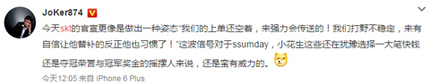 不过大家还是感到惋惜,S6风头最大的人里面,我觉得鸡哥敢说第一没有人敢说第二。临危救主,在生死局的时候拖下ROX,面对三星又是无敌carry,无论从上面方面看,大家都觉得,那个曾经的野王鸡又回来了。Faker最信赖的打野,传奇中野,三个打野冠军皮肤……,无数的头衔让鸡哥在Faker面前也有着极大的分量。天下没有不散的宴席,现在Faker身边有了小黑,又有可能有了花生酱。笨鸡的离开,将是SKT新时代的开始。