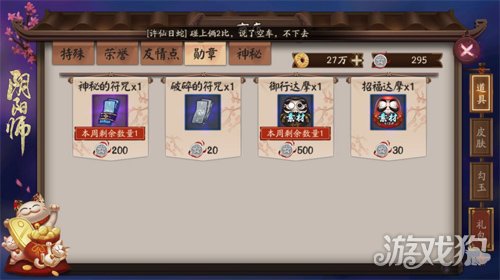 12月14日,《阴阳师》推出了神龛商店,等级大于15级的阴阳师们可以选择将式神放进神龛进行返魂从而获得御札,使用御札可兑换神龛商店中的上架式神和稀有道具。SSR式神返魂获得750御札(注:两面佛返魂获得500御札),SR式神返魂获得100御札(注:妖气封印、式神挑战中可获得碎片的式神返魂获得5御札),N卡式神不可返魂,被返魂的式神无法还原。第一期神龛商店可兑换的上架货品有SSR式神一目连(价值6000御札),八百比丘尼苍之雀羽皮肤(价值4500御札)以及御行达摩(价值1500御札),每种式神和道具均限购一次。对于持有大量多余式神的玩家来说,神龛商店的推出无疑是一个重磅福利,进一步丰富了式神的获得方式,同时也给了广大玩家一个拥有SSR的机会。