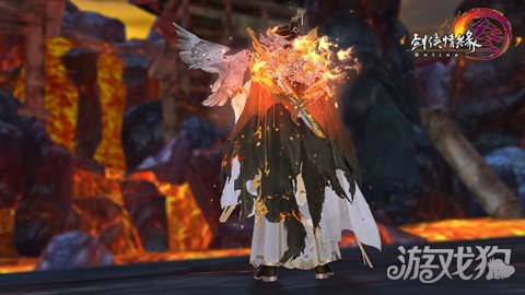 “沉醉东风·业火劫”别出心裁的采用灰烬重燃为主题,精选特殊材质布料,蔓延的火光循环往复,在低调的配色中尽显华丽。披风配饰以麒麟短兵精雕细琢,惟妙惟肖。使用轻功后,如同巨大的灰烬之翼在侠士身后展开,引人瞩目。