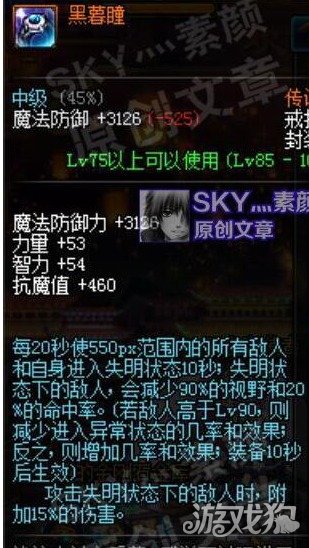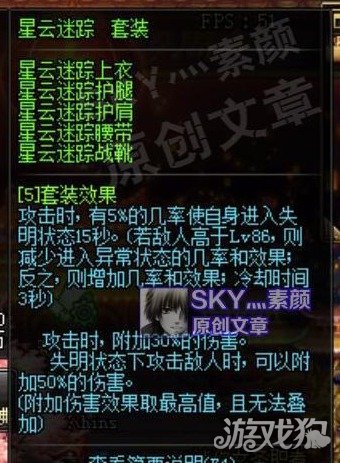 星云所有失明状态都是86级的,所以对于90级的角色来说触发几率不太高,只有这套的玩家,可以配合传说戒指黑暮瞳使用: