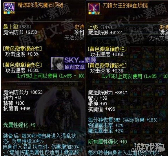 上衣:攻击时5%几率进入失明,失明等级上限86级,加三级45级和两级60级技能。