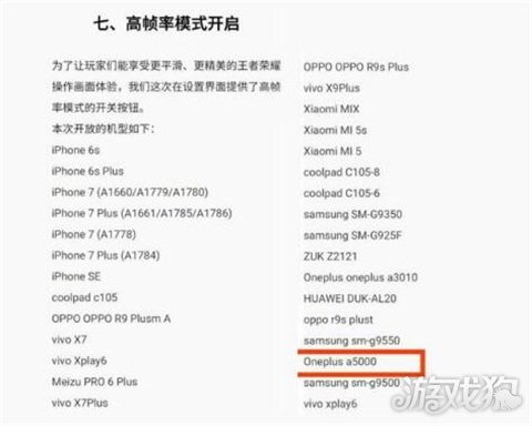 有了硬件配置作为基础,可以保证玩游戏的流畅度,再来看看一加5在游戏画质上的表现。从《王者荣耀》官 方公布的信息可以看到,一加5目前唯一一款支持《王者荣耀》高帧率模式的骁龙835处理器的国产手机,最好的流畅度搭配最清晰的游戏画面,让一加5成为目前最强的游戏手机。