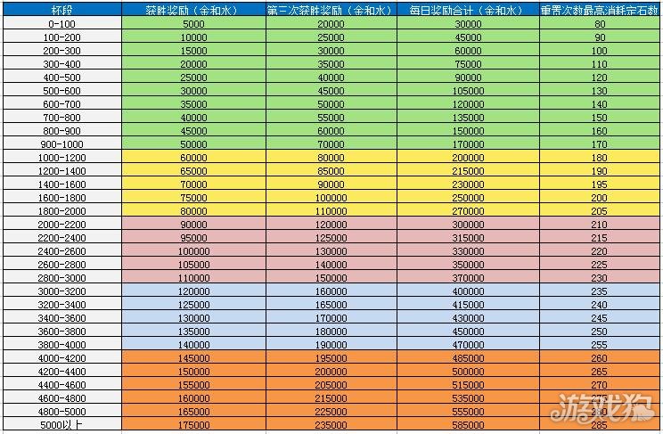2018年3月,《部落冲突》夜世界8本更新,对抗赛杯数对应奖励,从4000杯封顶提升到5000杯封顶,4000-5000杯之间增加了多个奖励区间。 夜世界对抗赛杯数对应奖励如下: 友情提示:在夜世界8本限定活动“建筑大师基地战斗盛宴”期间,对抗赛奖励将是平时的1.25倍。