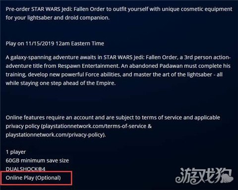 在上周举办的星球大战年度庆典上,重生工作室CEO曾宣布星球大战绝地:组织殒落没有多人玩法。但据外媒Gaming Bolt报道,星球大战绝地:组织殒落在PS商店的商品信息显示,包含了可选的在线游戏内容。