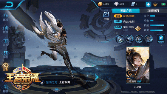 毛笔本是偏柔弱的物件,但又能写出苍劲的笔墨,上官婉儿在战场上的表现也应是如此。她既脆弱又强大,自在飘逸,但又步步为营。刺客法师的定位,对她来说再适合不过了。