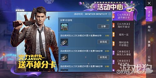 哈喽,小伙伴们大家好,欢迎来到和平精英。今天小编给大家带来了和平精英最新的活动,玩火力对决模式送排位不掉分卡。具体什么情况接下来我们一起看看吧。 火力对决送不掉分卡 活动时间:11月9日-11月17日 参与火力对决模式赢取不掉分卡 活动期间在火力对决模式中累计竞赛60/120/180分钟*1排位不掉分卡 活动期间在火力对决模式中累计淘汰5/12*1排位不掉分卡 活动期间与好友组队参与3场火力对决模式*1排位不掉分卡