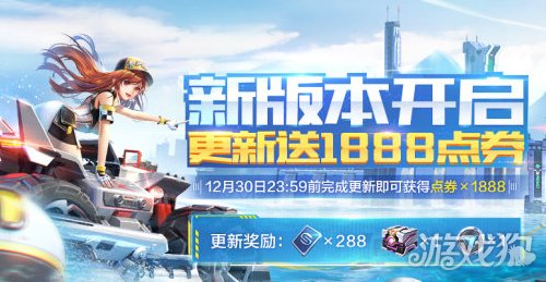 完成更新后,小橘子将奉上288点券+许愿银币(1个)+改装科技箱[中](1个)的更新福利,在12月24日至12月30日23:59期间更新的车手还可以获得1888点券的额外福利哦!请记得更新后在邮箱领取。