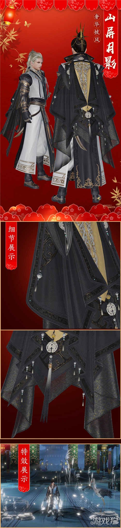 在本次的元宵节活动中,《剑网3》商城将会上线两款奢华定制主题披风“折枝缀雪”与“山屏月影”,两款披风各有千秋。