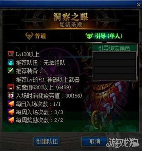 * 单人挑战模式,每个账号最多可以绑进4个角色,绑定的角色可以进入引导模式的洞察之眼:复活圣殿,也可以进入正常模式的洞察之眼:复活圣殿