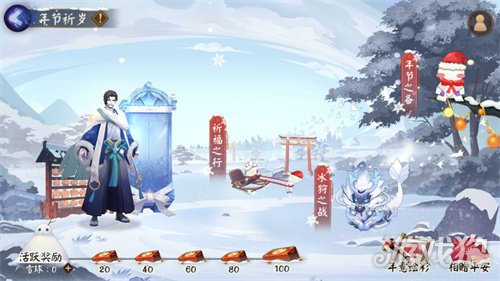 ※祈福之行:大人可通过组队或活动界面参与「祈福之行」。活动期间,大人每天可参与20次祈福玩法,完成后可获得「雪球」、随机六星御魂等奖励。