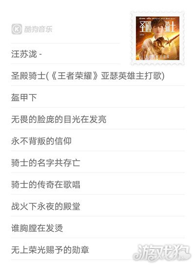 王者,不可阻挡!不久前,汪苏泷发布001号英雄亚瑟主打歌《圣殿骑士》,燃起无数“亚瑟控”的熊熊斗志。随着这首歌曲的发布,近日王者荣耀英雄主打歌完整歌单霸气登陆酷狗音乐,整整十首英雄主打歌,让玩家的肾上腺素随音乐直接爆表。