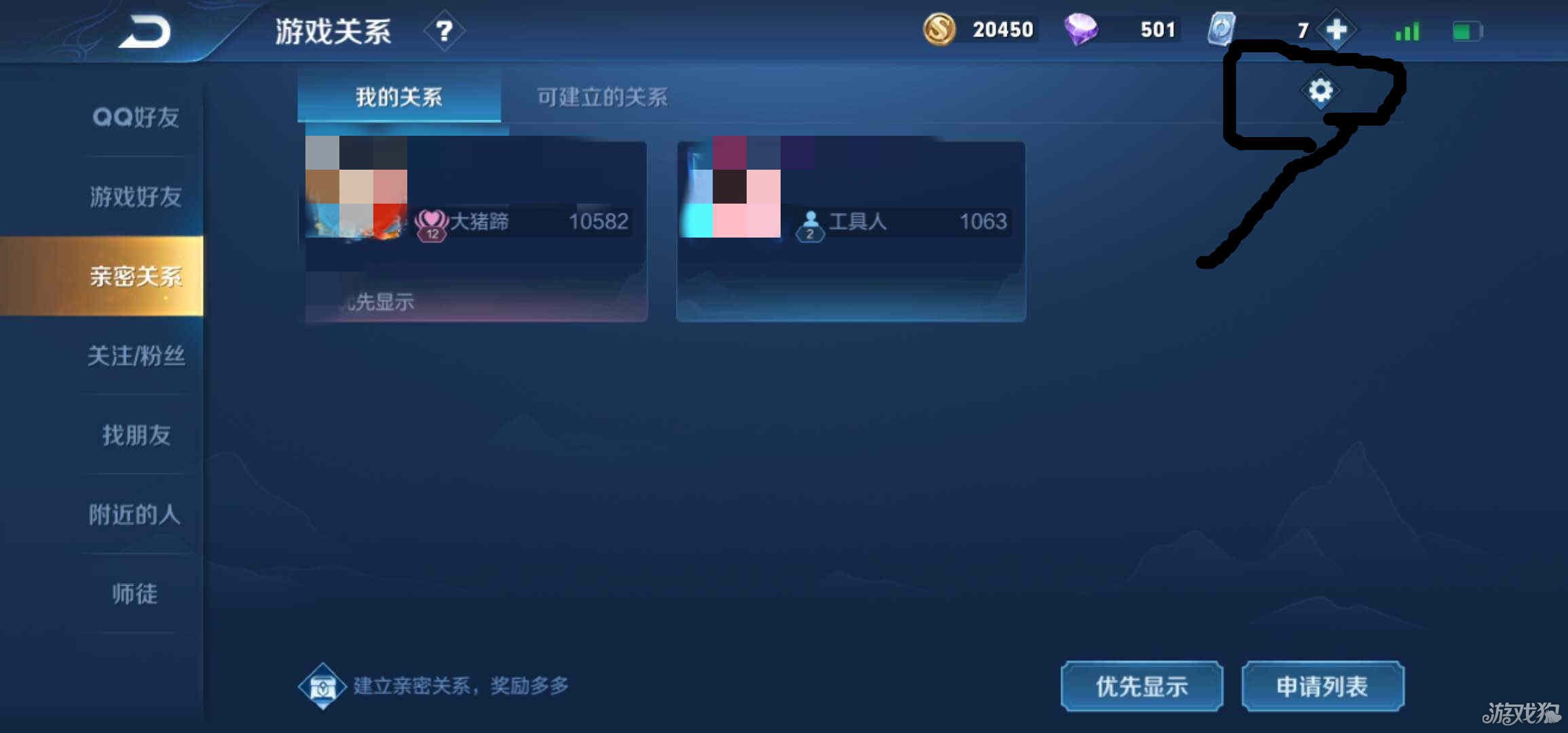 游戏关系——亲密关系——点击右上角设置——更改关系称号——选择一个自己喜欢的