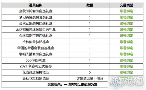 dnf国庆套2020礼包有什么,金秋版本即将上线,今年的国庆套礼包里面有哪些东西,值不值得入手,不少玩家还不是很清楚,本期就随小编一起了解一下吧,希望对于各位勇士来说有所帮助。 2020金秋礼包 上线时间:9月22日 礼包售价:33800点券 礼包内容: 时装/武器装扮/光环装扮/特别宝珠/宠物/普通宝珠套装/称号/装扮花蓝 特别花篮/海暈赠品 金秋装扮属性: 武器外观展示: