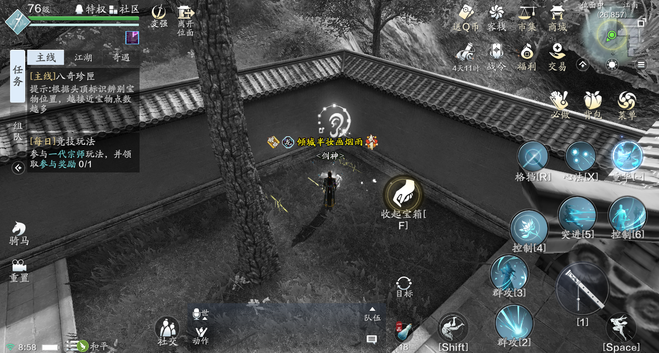 宝匣一:坐标为[江南(26,857)]。位于华清寺西南墙角,宝匣旁有一棵小树;
