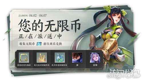 赏金无限连,参与活动送无限币,可在“赏金猎手”活动中(4月2日逐区开启)用于兑换英雄、回城特效、限时语音和头像框等好礼! 收集活动时间:4月2日更新后-4月7日23:59 对局模式:5V5匹配、排位、娱乐模式、5V5人机模式、全民电竞模式 1)通过每日任务总共可收集无限币*30 2)通过无限连任务总共可收集无限币*17