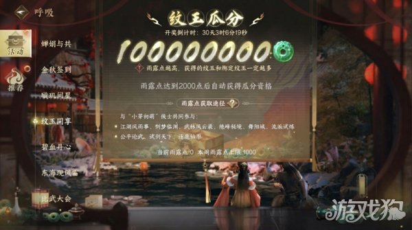 若同门获得雨露点达到2000点,将自动报名参与10月29日晚22时的全服纹玉瓜分,届时将瓜分100000000纹玉与若干绑定纹玉,奖池再度加码!