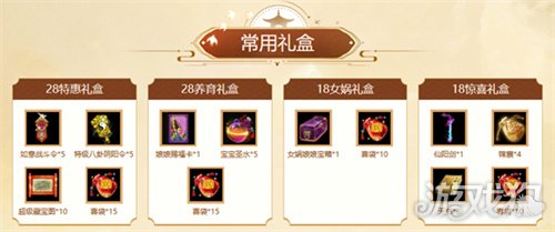 此外商城还一起上架了四种礼盒,下架时间也是2025年7月6日 23:59,不同的礼盒所包含的道具不同,每种礼盒中都会有不同数量的喜袋,开启喜袋将有机会获取惊喜奖励。。