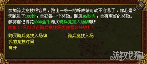 所谓骑兵竞技,就是进行赛马游戏,只要在指定时间完成比赛,就能获得丰厚的奖励。