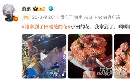 活动期间,多元创作者集体发力,更是调动起平台内生力量,实现玩家UGC与口碑的精准裂变。盛典当晚,众多游戏博主不仅直击现场、解读亮点,更通过与明星的“破次元互动”引爆话题。例如博主@游第 获得田曦薇手捧花,相关博文迅速登上ACG热榜,并助推#田曦薇美成这样#登顶热搜榜、文娱榜TOP1,实现跨圈传播。