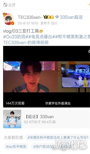 例如TEC体坛电子竞技俱乐部和平精英分部选手@TEC33Svan- 就化身采访vlogger,深入后台为观众送来一手资讯,有效触达电竞粉丝群体,进一步扩展传播维度。线上线下多圈层创作者联动呼应,形成流量聚合效应,持续放大《和平精英》及刺激之夜IP影响力。