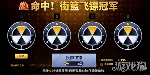 使用495个金星硬币后获得一次数字全部都是6的4个飞镖盘并且可以免费投掷一次。