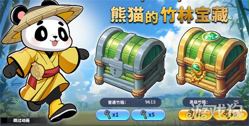 普通竹箱初始数量为9999个,高级竹箱初始数量为0个。购买“普通竹箱钥匙打开普通竹箱(抽取)。打开普通竹箱概率获得“高级竹箱”,需要购买“高级竹箱钥匙”打开。抽取分为1次/5次抽取。每次抽取累计“开箱总数”,经过5个节点可以获得不同礼物。领完5个礼物后点击重置按钮后可以反复领取累积抽宝箱礼物。每打开1次普通竹箱或者高级竹箱可以获得1个“竹叶”,可以用于兑换礼物。