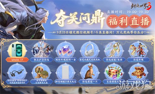 夺关问鼎资料片嘉年华开启,各位少侠不仅可以在游戏内参与新版本各项活动,也可以在【夺关问鼎福利直播】抽取多重豪华大奖!参与游戏内日常活动获得兑换材料,集齐后兑换好礼有机会获得直播抽奖券、护法招募券、现金红包兑换等。拥有抽奖券的少侠可参与抽取iPhone17、极品护法任选、炼彩外观材料、索尼无线耳机、南京博物馆文创礼盒、任选在售外观等奖励,听说在新超级大服获得直播抽奖券的概率更高哦~