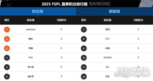 2025《街头篮球》FSPL职业联赛常规赛共有12支职业俱乐部参赛,除了UNKNOWN、耀世、PSG、麻☆煩、極★致、黑洞、神威、EHOME、AG以及彩虹10支老牌战队之外,还有新加盟的常勝以及EV3俱乐部,他们将进行8周的赛程争夺最终的常规赛冠军。