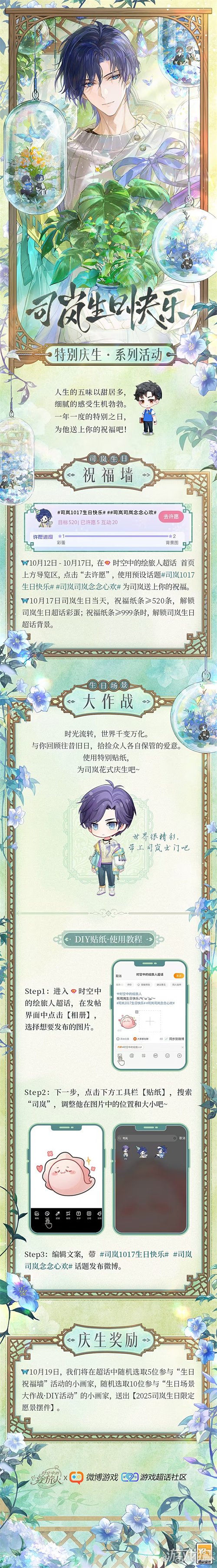 10月19日,我们将在超话中随机选取5位参与“生日祝福墙”活动的小画家、10位参与“生日场景大作战”活动的小画家,送出【2025司岚生日限定愿景摆件】1份。