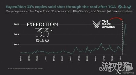 据Alinea Analytics数据分析显示,该作在TGA夺奖后,每日销量立即飙升至此前的6倍。颁奖礼结束后,游戏累计新增销量超20万套,总销量正式突破600万套大关。