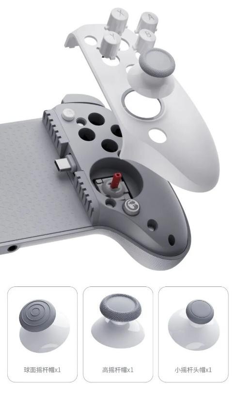 磁吸面壳可拆卸;磁吸ABXY键自由切换Xbox/Switch按键布局;附赠3个不同类型摇杆帽,适应不同游戏操作习惯。