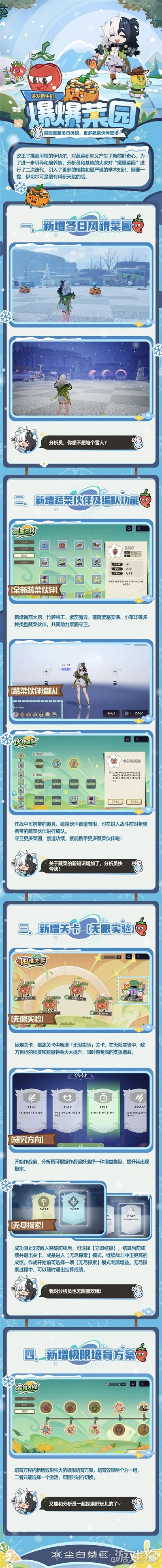 趁着伊切尔对蔬菜的态度大为改观,分析员持续为【爆爆菜园】引入更多蔬菜伙伴,这也使全新冬日风貌的菜圃焕发出别样生机!